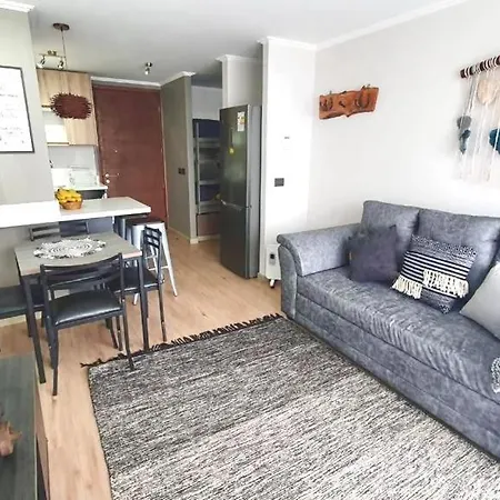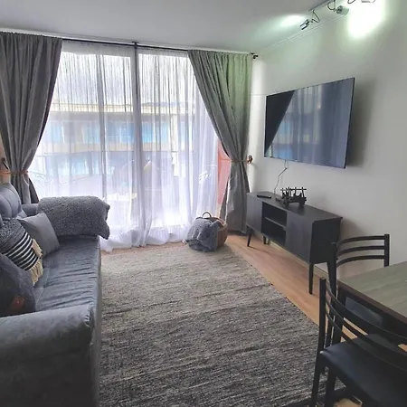 Centrico Dpto En Pucon Con Terraza Y Espectacular Vista Al Volcan apartment is located 2.6 km from the Plaza de Armas of Pucón and a 10-minute drive from Playa Grande. Guests can make use of Wi-Fi for both business and leisure purposes.